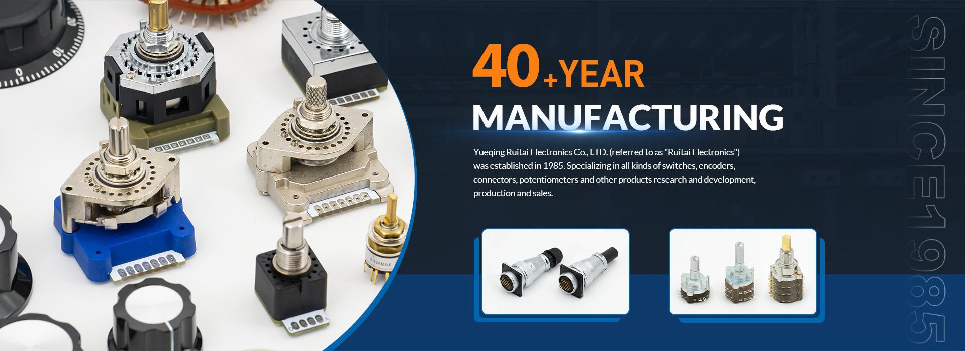 Yueqing Ruitai Electronics Co., Ltd. (называется ?Ruitai Electronics?) была создана в 1985 году. Специализируется на всех видах коммутаторов, кодеров, разъемов, потенциометров и других продуктов, исследований и разработок, производства и продаж. Компания объединяет науку, промышленность и торговлю, придерживаясь философии бизнеса ?реалистичных инноваций, целостности и бизнеса? и реализации бизнес -политики ?разработки инновационных продуктов, улучшения качества продукции, вдумчивого и комплексного обслуживания?. И постоянно объединять рыночный спрос, изучать ценные предложения клиентов, интегрировать передовые технологии и управления дома и за рубежом, а также продолжают улучшать и расширять в развитии. В настоящее время завод охватывает площадь 25 300 м2, с 113 сотрудниками и 19 техническими персоналами. Оснащено расширенным производственным оборудованием, полной системой инспекции качества, старшими продажами и после -.